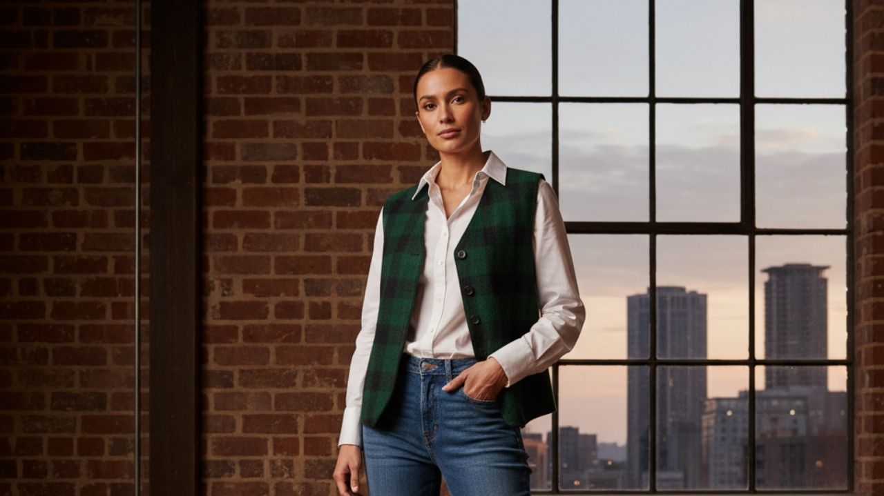 A crisp and clean white button-down shirt layered under a green checkered vest instantly adds texture and personality to your look. Pair it with denim jeans for that comfy, versatile, and effortlessly cool vibe. To finish, slip into lime ankle boots—they add a fun pop of color while keeping you warm and stylish. I’ve worn a similar combo to a winter concert, and trust me, it’s perfect for turning heads without sacrificing comfort or that classic charm.